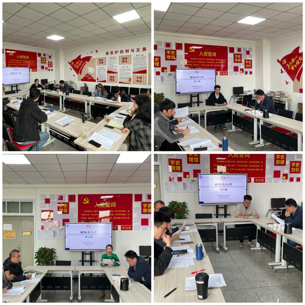 学院刘明杰、周婷、彭如麟、王志祥四位辅导员通过学习贯彻习近平新时代中国特色社会主义思想主题教育,围绕“学思想、强党性、重实践、建新功”的总要求,结合自身工作实际与大家进行了分享个人学习成效和改进工作的思路措施。与会辅导员老师一致认为,作为高校辅导员老师,要深入学习贯彻党的二十大精神,自觉践行习近平新时代中国特色社会主义思想,积极识变应变求变,主动解决学生教育管理服务工作中存在的新问题,推动学院学生工作取得新进展新突破;要从习近平新时代中国特色社会主义思想中汲取奋发进取的智慧和力量,不断提高工作能力和水平,在以学铸魂、以学增智、以学正风、以学促干方面取得实实在在的成效;要引导学生真学真懂真信真用党的最新理论成果,把理想信念植入到新时代大学生的心里,引导其扣好人生第一粒扣子,把握好世界观、人生观、价值观的“总开关”,真正担负起中华民族伟大复兴的历史使命。