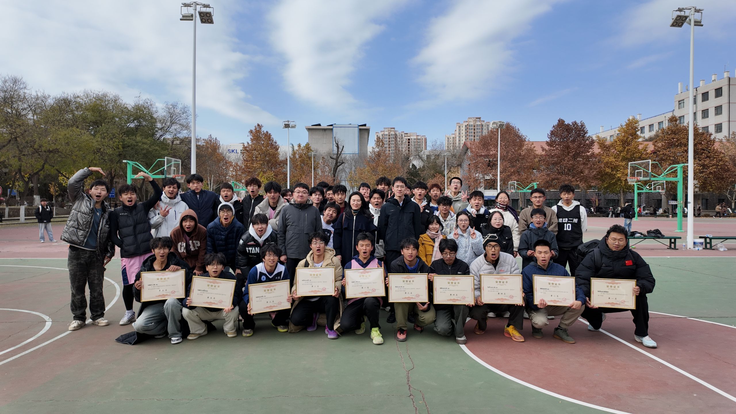 在篮球赛中,球员们攻防转换间展现着精准的传球与果断的投篮,面对劲敌时的战术调整与默契配合备受关注;拔河比赛中,参赛学子们脚蹬实地、肩并肩紧拽长绳,用身躯诠释着“拧成一股绳”的团结力量。场边师生的呐喊助威声此起彼伏,每一次得分、每一寸拉扯都凝聚着集体的期盼与荣光。最终,篮球比赛中能源与动力工程2班获得第1名,机械电子工程2班获得第2名,测控技术与仪器1班获得第3名;拔河比赛中能源与动力工程红柳卓越班获得第1名,能源与动力工程3班获得第2名,测控技术与仪器1班获得第3名。