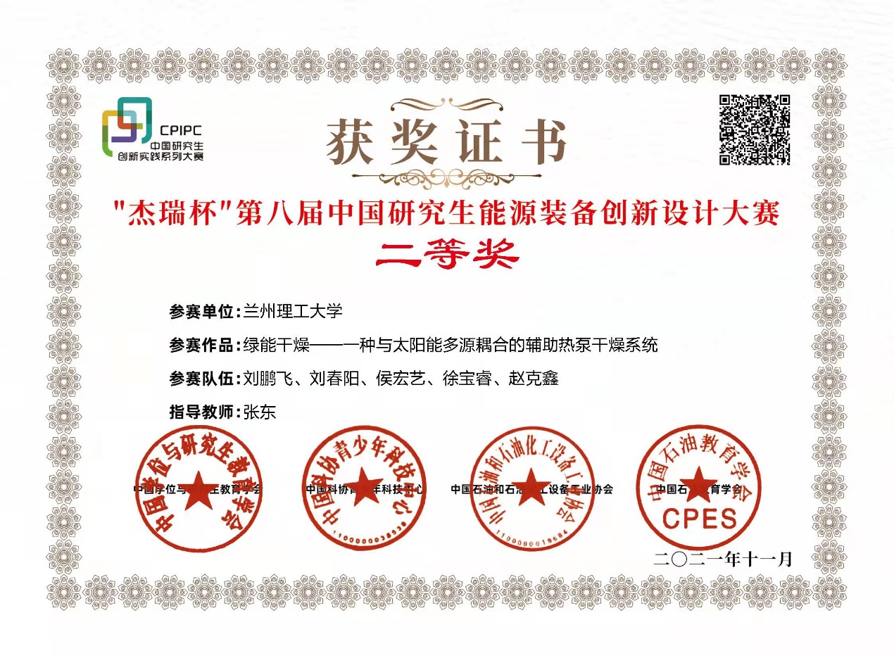 本次赛事共有来自全国193个研究生培养单位的1261个参赛团队、5339名研究生参赛。我校组织选拔了24项作品参与全国决赛选拔,最终能源与动力工程学院组织的“绿能干燥”团队作品进入全国总决赛。最终在全国总决赛中斩获全国二等奖,兰州理工大学获得大赛优秀组织奖。我校在研究生创新创业方面的做法和经验也获得大赛组委会的一致认可,是我校在2019年中国研究生能源装备创新设计大赛获得全国三等奖后新的突破。