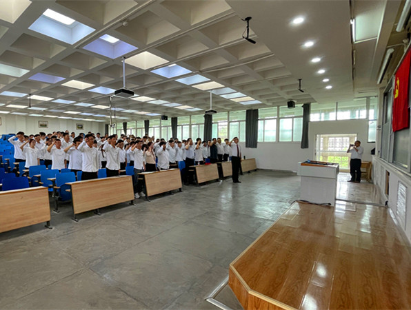 9时整,新党员入党宣誓活动在《国际歌》中拉开序幕。面对鲜红的中国共产党党旗,全体新党员和学生党员代表举起右手、握紧拳头,齐声跟读入党誓词,以铮铮誓言,表达坚定不移听党话、跟党走,薪火相传、踔厉奋斗的信念和决心。新党员们纷纷表示,通过共同宣誓,坚定了“青年学子心向党”的信念,他们将在今后学习工作中把爱党爱国爱社会主义的热情转化为实际行动,用实际行动践行入党誓词,用不懈奋斗兑现庄重承诺,践行初心使命,为学校学院高质量发展贡献力量。