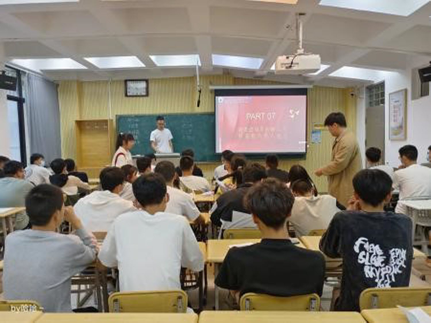 第三个模块是开展班级文化建设及方案展示,其主要内容包括班级口号、班级精神和班级标识(Logo)的内容的征集,通过班级各位新同学参与这些要素的构建,形成班级文化气氛,进而增强班级凝聚力。活动第四和第五个模块是新生王惠惠和李诗娆两名同学带着同学们学习学生手册中有关大学生评奖评优制度与政策和学生违纪违规处理的相关规定的章节内容,引导和帮助新生了解学校管理与学生培养的关系,规范新生学习生活,规划班级管理。活动的最后一个模块选举本班班委会成员和班级学科竞赛及学习兴趣小组负责人。