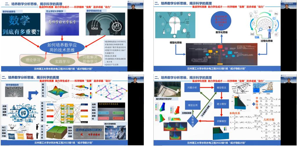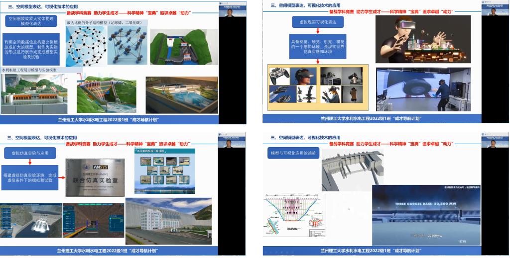 11月13日,水利水电工程2022级1班开展班级举办的主题在“成才导航计划”系列活动“备战学科竞赛促进学习”活动第三场,专题活动名称为“探究‘模型’表达魅力、彰显‘数字’可视技术”,活动采用在线腾讯会议的形式。该,活动由班级中数学与数学建模兴趣小组和几何建模与数字化成图及可视化兴趣小组联合策划并实施,通过活动帮助新生梳理学业规划的不足,达到“以学科竞赛为抓手,探索大学成才秘密,开启科学学问之道”主要目的,最终建设优良学风,构建良好学习氛围。活动邀请能源与动力工程2020级卓越班李浩森、能源与动力工程2021级1班石疆涛和水利水工程2021级1班马欢三名优秀学生代表分享大学学习和学科竞赛经验,班主任龚成勇老师并做题为“备战学科竞赛助力学生成才”——科学精神“宝典” 追求卓越“动力”主旨报告,全班同学参加活动。
