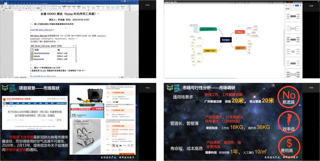 在优秀学长经验分享与交流部分,石疆涛同学通过学习python应用在数学建模方面的经验介绍,建议大家组成团队相互学习,需要对标学校关注的A类竞赛,发挥大家各自优势。马欢同学以自己参加“高教杯”全国大学生先进成图技术与产品信息建模创新大赛的经历介绍竞赛准备、训练、软件学习和竞赛技能等经验,并说明科创竞赛成果及获奖对综合测评成绩的贡献,并有利于提高学习专业知识和能力的重要性,马同学也强调团队作战的必要性。李浩森同学的分享从数学建模案例入手,介绍建模软件的学习逻辑和使用流程,从而强调学习数学建模思想和软件应用并重;李浩森同学从“科创是什么”、“科创有什么用”、“如何有一个好的创新想法”和“科创需要什么样的技能”等四个内容介绍参加学科竞赛的价值、意义及科创的基本技能和科创能力的提升,并建议同学们进入大学之后认真规划大学时光,需要端正态度、调整心态从一年级开始认真学习,针对科创李浩森同学要求一定要参照学校小法的认证的竞赛清单,选择好自己擅长竞赛类别、组好队伍、训练技能、做好竞赛素材,充分与指导教师的交流。三位高年级同学与参会学生进行互动交流并回答他们所提的问题。