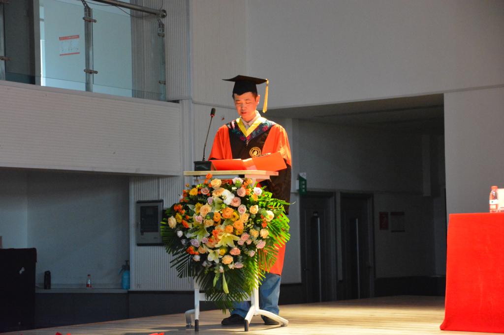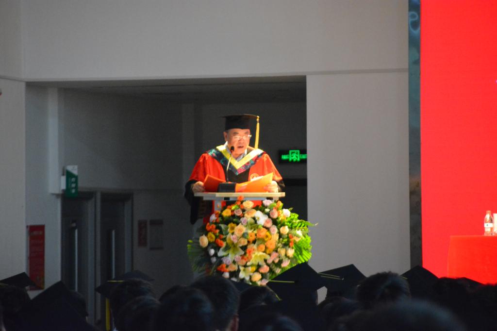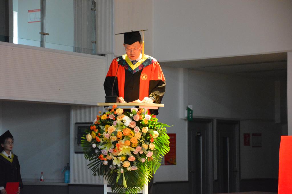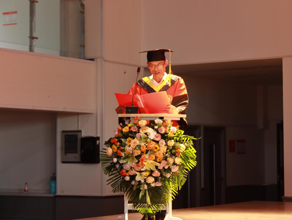 教师代表赵文举教授为毕业生送上了真挚的祝福寄语,勉励青年学生,要志存高远,情系国家;独清独醒,知责行责;心怀感恩,砥砺前行。希望同学们心中有阳光,脚下有力量,为了理想能坚持、不懈怠,才能创造无愧于时代的人生;希望同学们敢于做先锋,而不做过客、当看客,让青春年华在为国家、为人民的奉献中焕发出绚丽光彩。