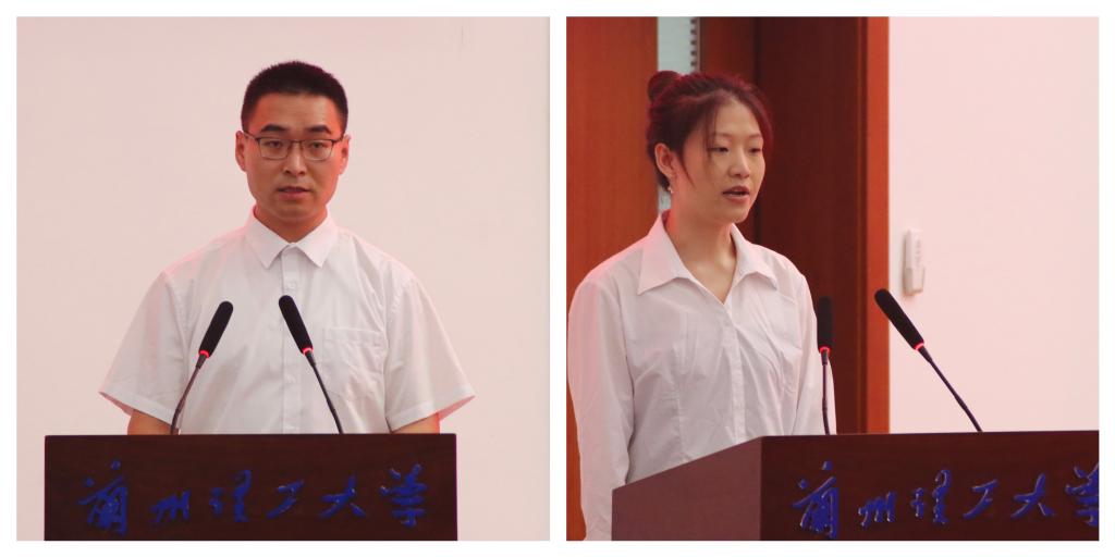 研究生国家奖学金获得者、2021级研究生唐玉财同学作为在校学生代表发言,他鼓励新生要转变思维,学会自主思考,要学会学习并且长期坚持。2023级研究生代表耿雯雯同学发言。她倡议全体同学要做一个目标明确、锲而不舍、勤学奋发的孤勇者;要做一个独立思考、自主学习、开拓创新的追梦人;要做一个珍惜时光,锐意进取,做一个不舍寸功的实干家。