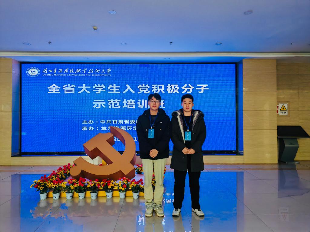 根据学校党委组织部统一安排,能动学院选派入党积极分子杜嘉玮、丁政同学参加甘肃省高校大学生入党积极分子示范班培训。本次示范培训班由甘肃省委组织部、省委教育工委举办,在兰州资源环境职业技术大学开班,为期3天。
