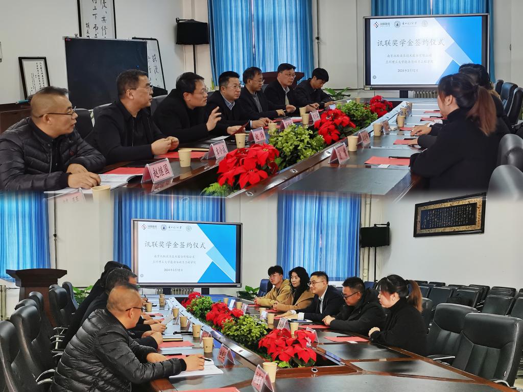 3月12日,讯联奖学金签约仪式在能动学院会议室举行。南京讯联液压技术股份有限公司副总经理周国龙,技术总监单俊峰,技术专员王东东,人力资源经理侯薇,人力资源业务合作伙伴谢倩,学校校友总会办公室主任马栋林,学校党委学生工作部副部长赵炜,学院院长魏列江,学院党委书记章小成,学院流体传动与控制系主任闵为,学院学生工作办公室主任赵继国等参加会议。