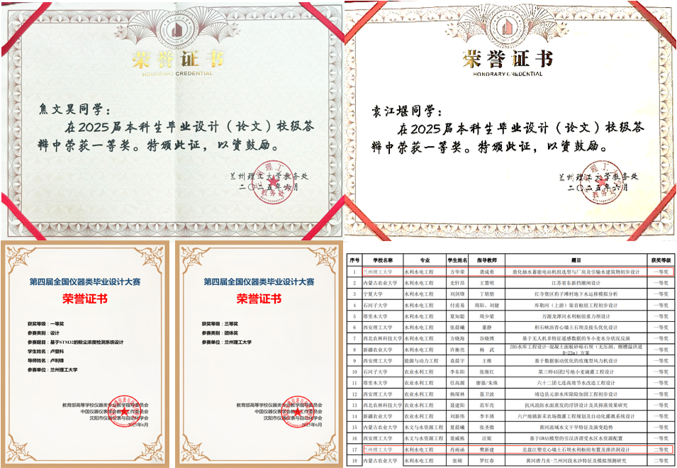 扎实的培养工作结出丰硕成果。在2025届本科生毕业设计(论文)校级答辩中,学院推荐学生的获奖率100%,新能源科学与工程专业和机械电子工程专业学生更是包揽小组前两名,斩获本组的全部一等奖。在首届“华维杯”西北地区涉水高校水利类专业毕业设计创新大赛中,能源与动力工程专业和水利水电工程专业的3名参赛学生分获一、二、三等奖。在第四届全国仪器类毕业设计大赛中,测控技术与仪器专业的2名参赛学生分别获得个人一等奖和三等奖,并取得团体三等奖的成绩。
