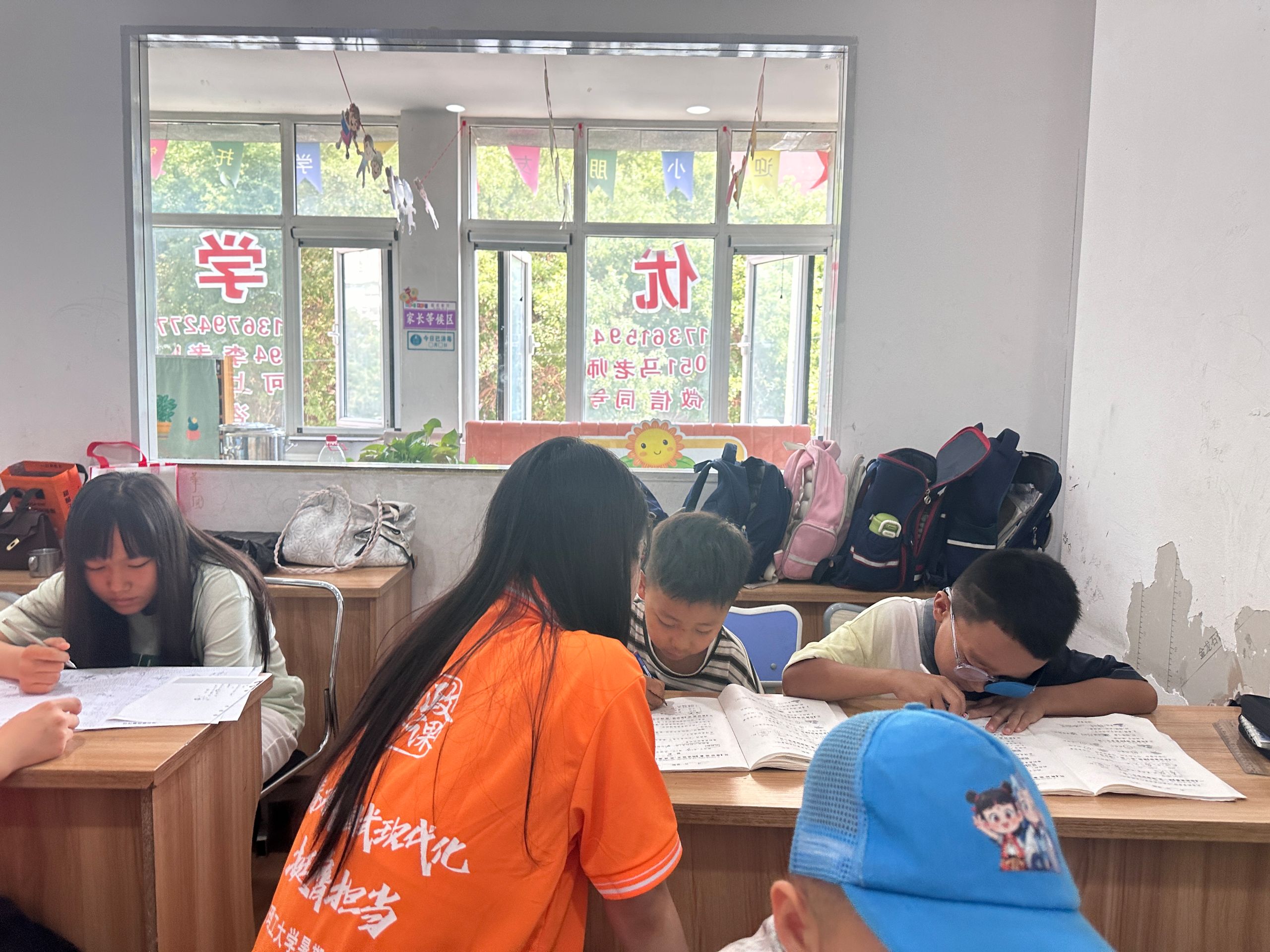 托管中心内,一至三年级的孩子们被分为三个班级,志愿者们针对性开展作业辅导。首日辅导课上,志愿者俯身答疑的身影、孩子们专注思考的神情,构成夏日里的温馨画面。午休时,托管中心的李阿姨把热气腾腾的饭菜端上桌,笑着招呼:“孩子们学习费脑子,得多吃,你们大学生辅导他们也得补补,一样多吃点。”一句家常话,让这场公益行动顿时有了烟火气。