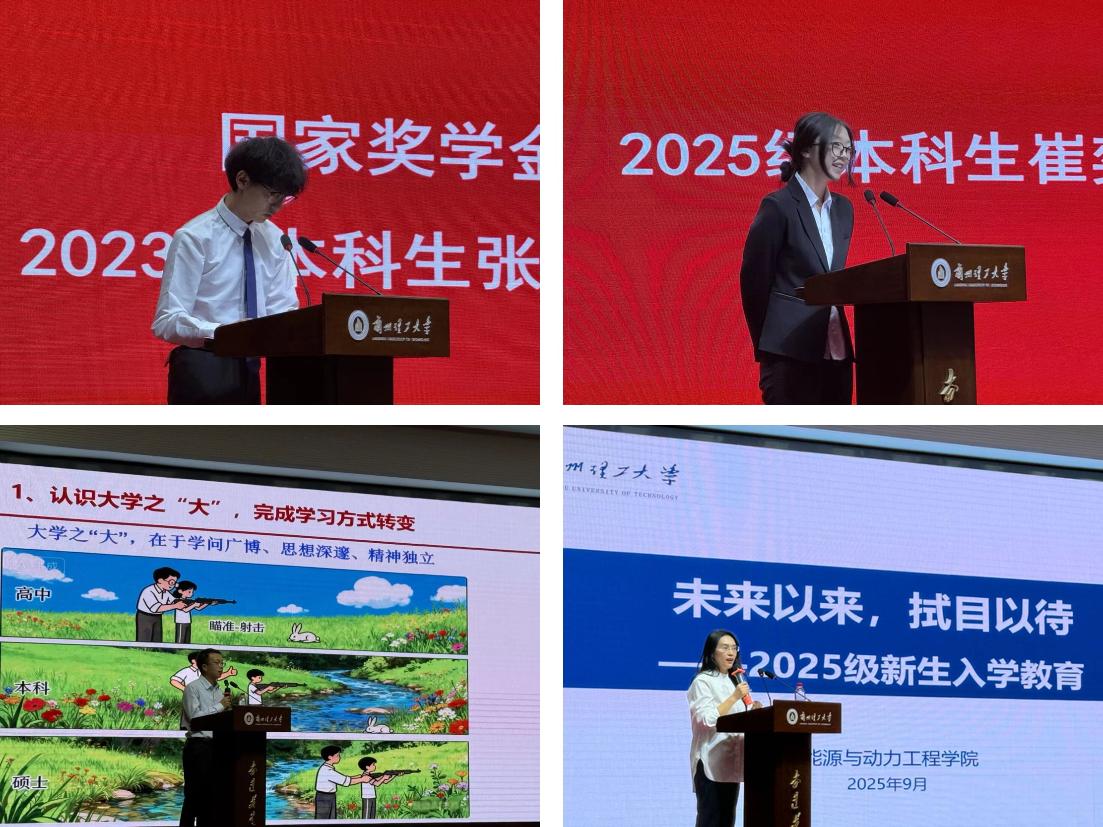 2023级本科生国家奖学金获得者张俊杰、2025级本科生代表崔奕然分别代表老生、新生发言。